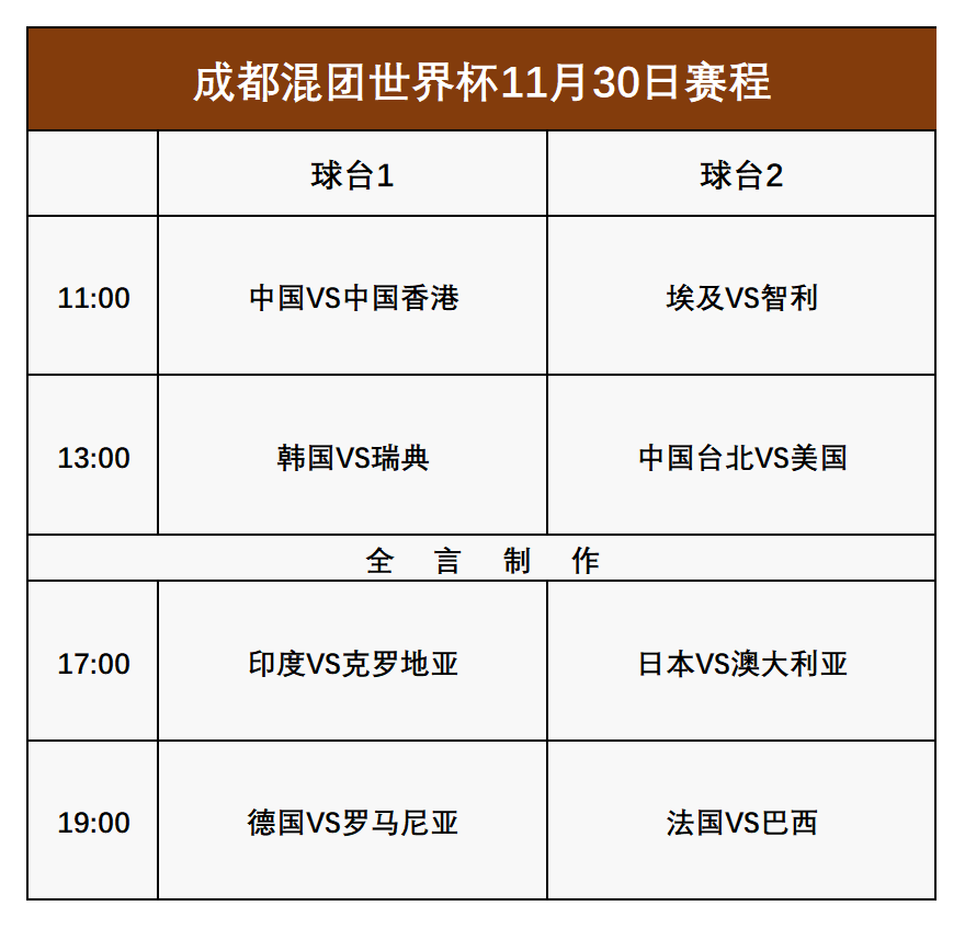 乒乓混团世界杯今天开打!11月30日赛程公布,国乒迎战中国香港队