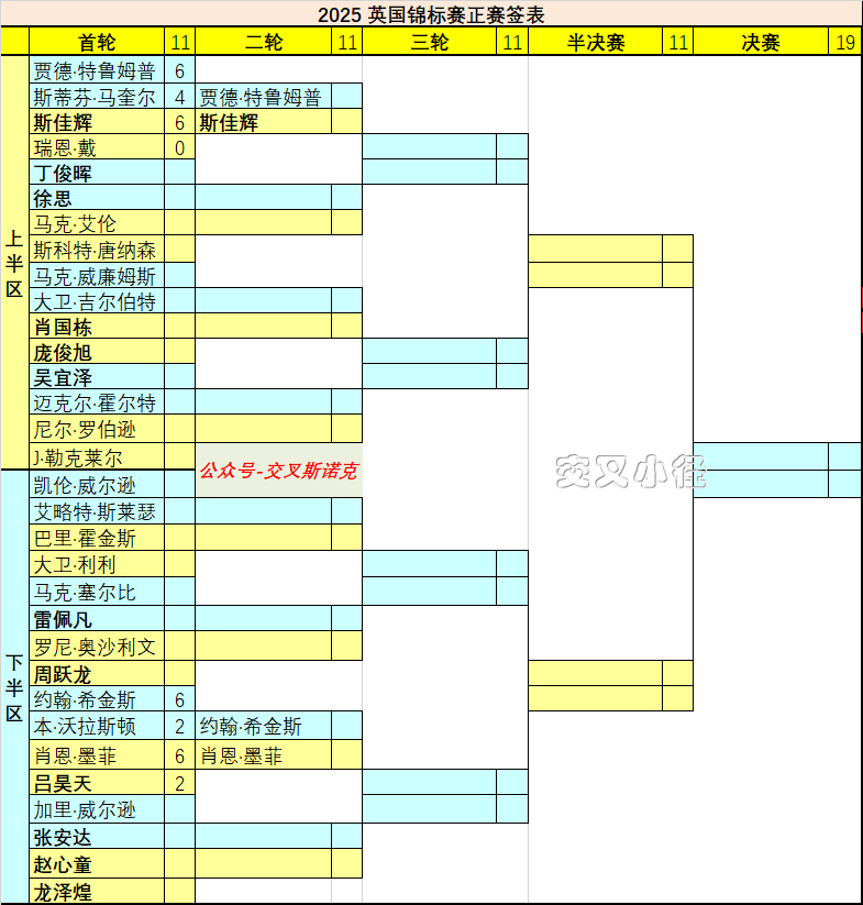 1. 中国球员:斯佳辉零封瑞恩·戴,吕昊天遭5连鞭2-6不敌墨菲