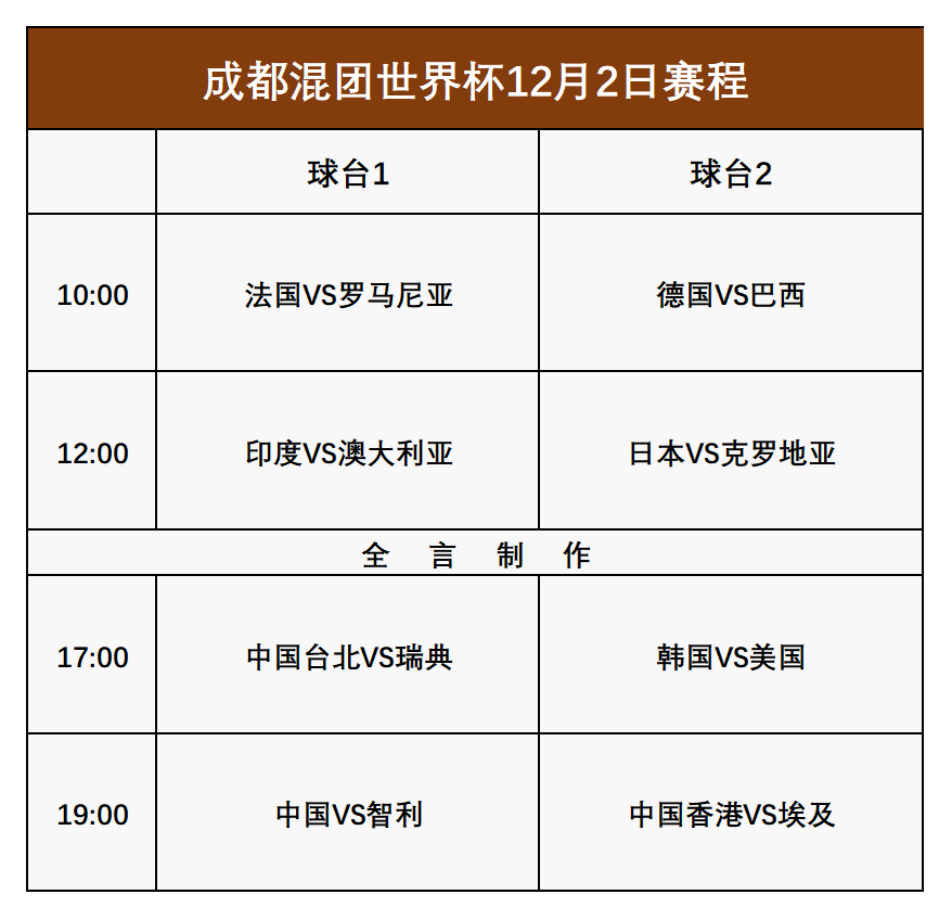 混团世界杯:12月2日赛程公布!诞生8强完整名单,国乒迎战智利