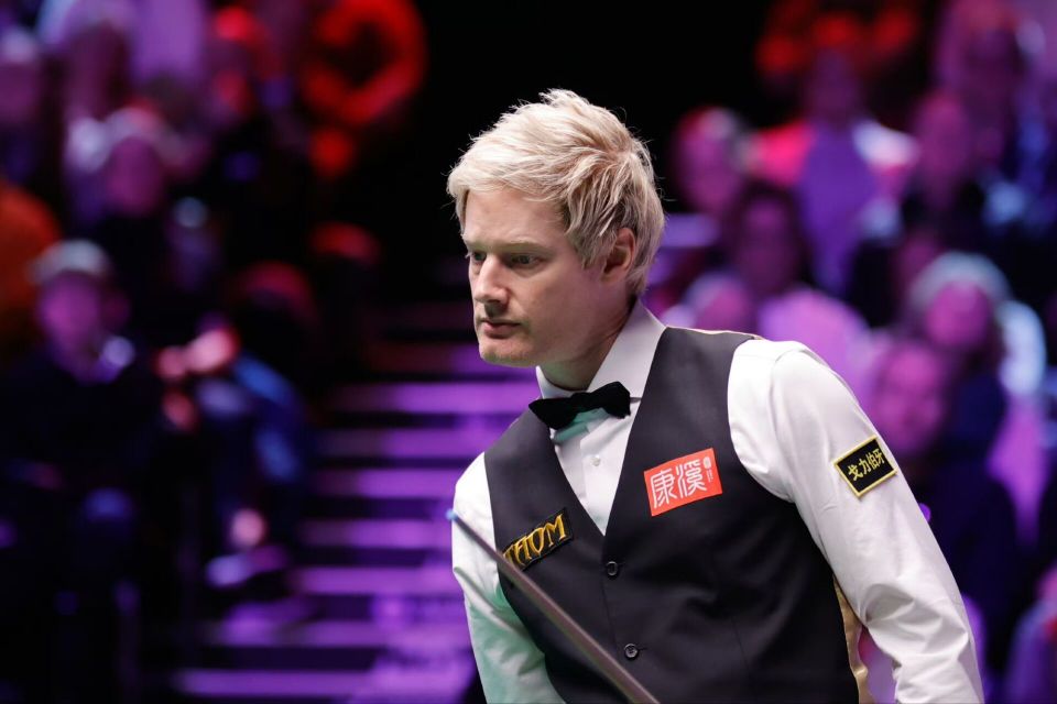 比赛开始后,第一局吴宜泽打出单杆62分中断进攻,罗伯逊差点上演单局逆转,只是关键的粉球没进,让吴宜泽以68-50先拔头筹,第二局罗伯逊越挫越勇打出单杆51分,以85-0再赢一局,第三局罗伯逊多次上手,以74-21赢得缠斗,第四局罗伯逊上手后打出单杆65分,以73-49拿下这局。
