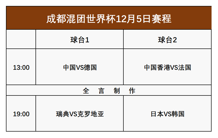 混团世界杯:12月5日赛程公布!国乒迎战德国,日韩一决高下