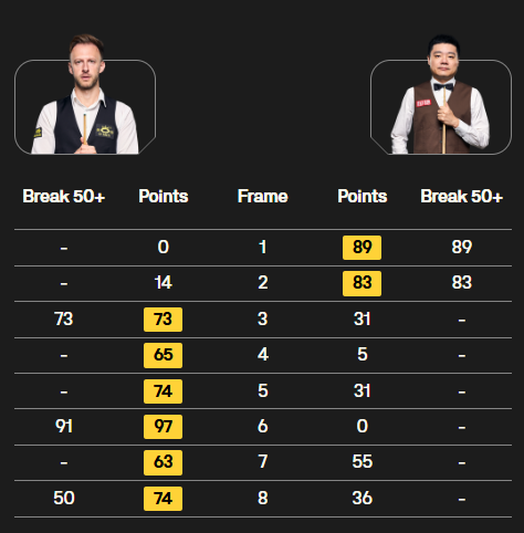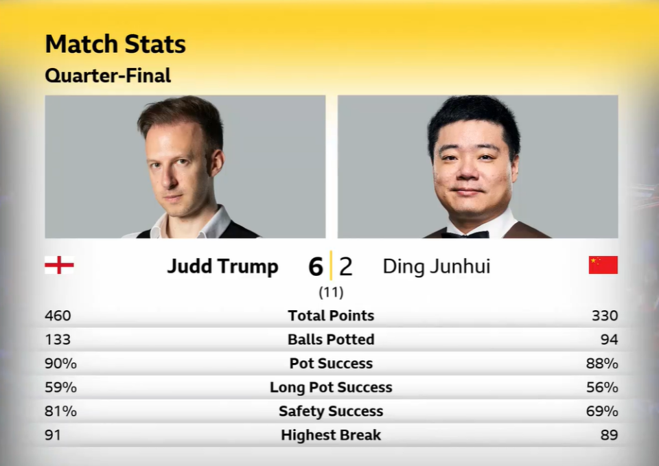 1. 丁俊晖惨遭6连鞭,2-6不敌特鲁姆普,庞俊旭4-6不敌罗伯逊