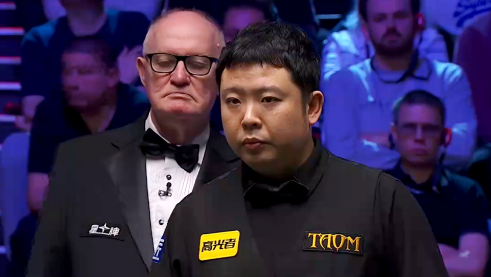 同时段,庞俊旭挑战火炮罗伯逊。庞俊旭先赢一局后,连丢5局,其中第4局,庞俊旭打丢黄球,失制胜机会。