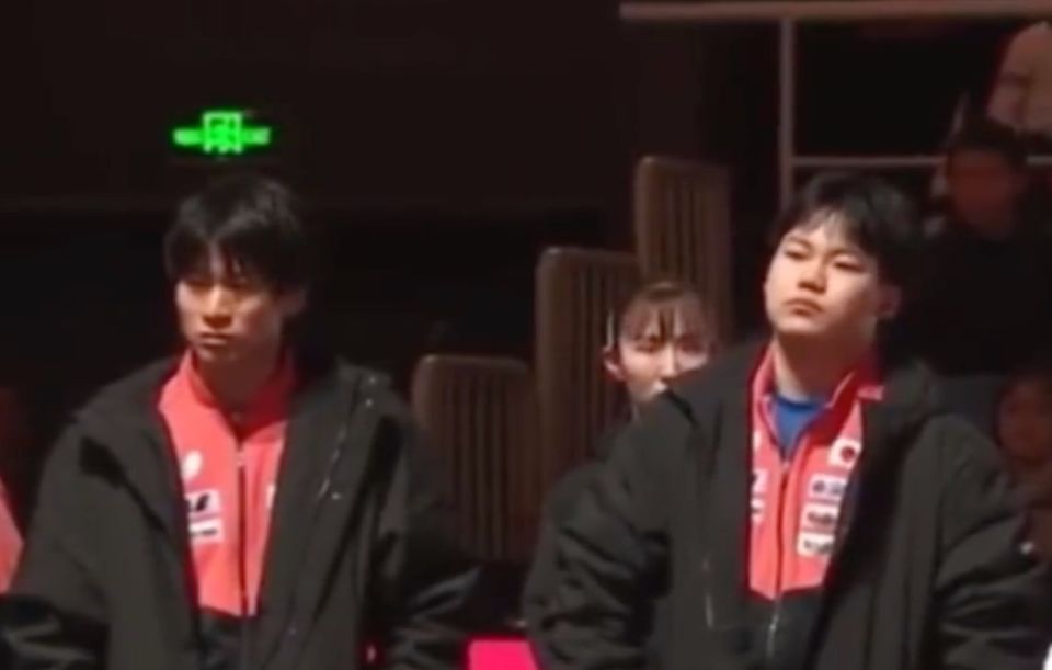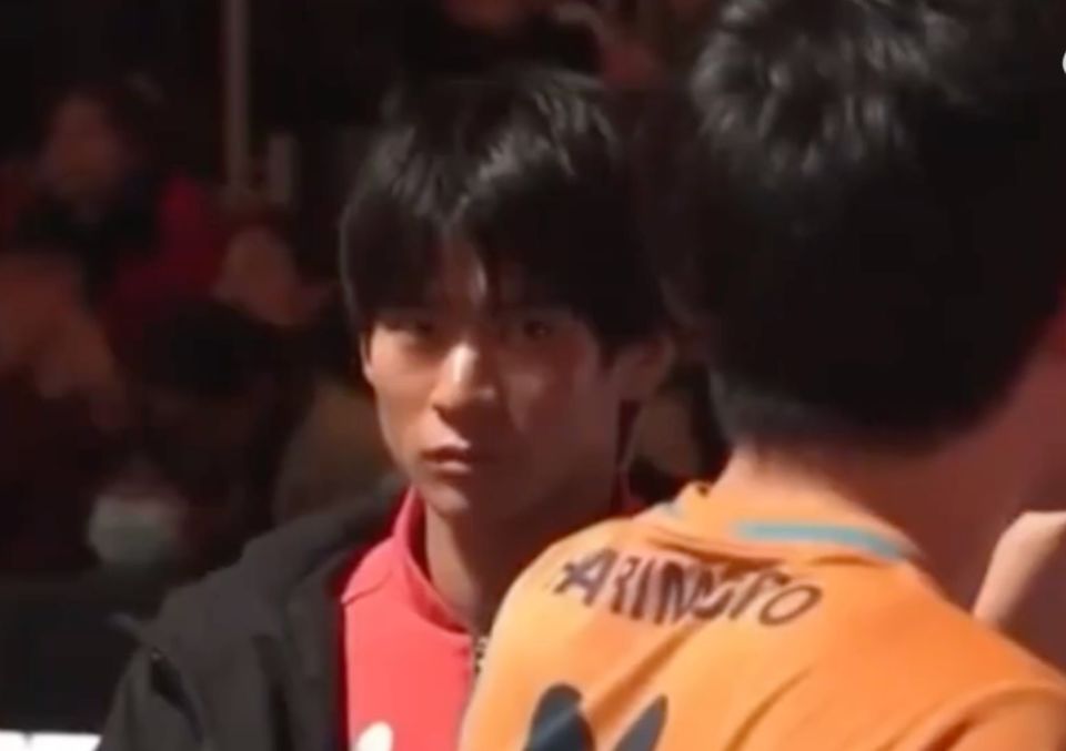 0-3输掉这盘比赛后,张本智和礼貌地与对手握手,然后回到日本队的教练席。张本智和只能短暂休息,因为他在第四盘还要搭档篠塚大登出战男双。而在张本智和休息的时候,其身边的队友户上隼辅露出了一个非常特殊的表情。