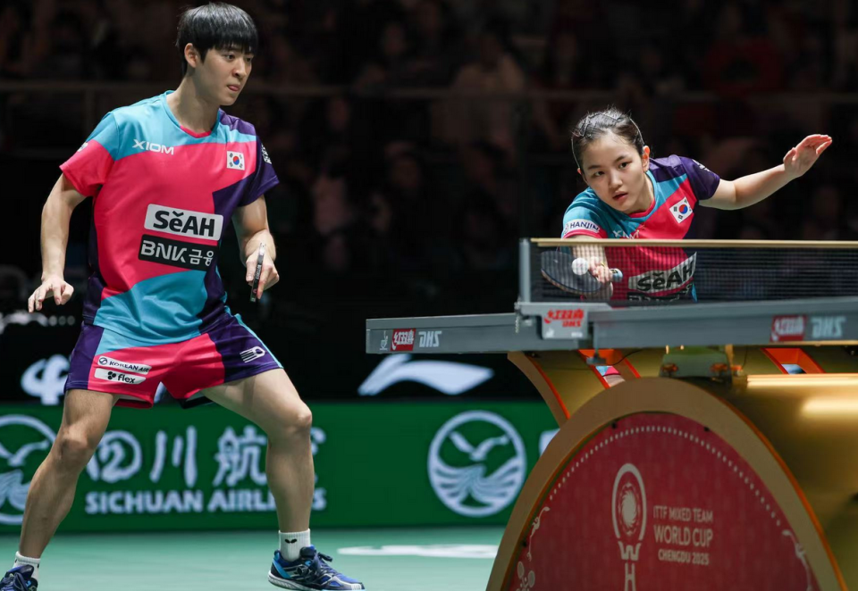混双金娜英/朴康贤对阵邱党/考夫曼,德国队强势发挥连得7分,保持优势顺利拿下第1局。第2局德国队开局7-2领先,韩国队反击效果不佳,德国队再度获胜。第3局韩国队开局5-2领先,德国队调整后追到6平,韩国队顶住压力把握关键分扳回1局。