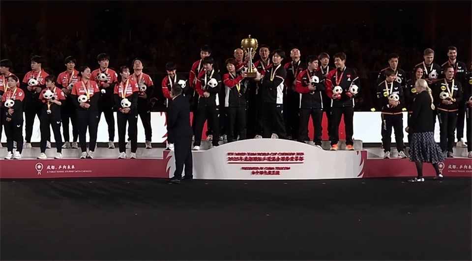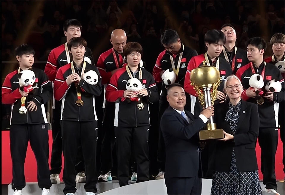 而赛后的颁奖仪式上,蒯曼跟王楚钦捧起奖杯,站在C位上,而在国际乒联担任二把手的刘国梁也是亮相,陪同索林女士一起颁奖。不过刘国梁只跟国乒每位球员都握了手,面对日本队,只是摆了摆手没有跟日本队的球员握手。索林女士是跟冠亚季军选手都握了手,其实刘国梁不跟日本队握手也属正常。