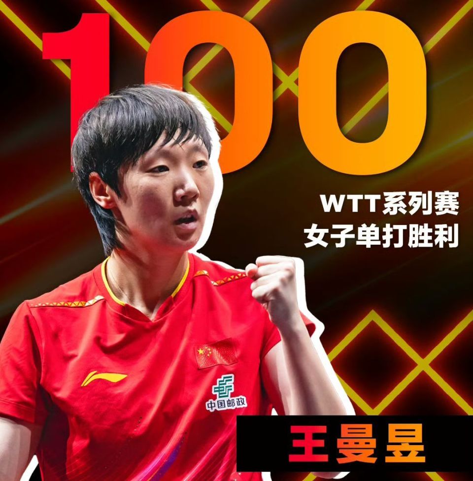 世界乒联向王曼昱表示祝贺,恭喜她获得WTT赛事女单第100胜,这是职业生涯全新的里程碑,从张本美和到朱芊曦,都是比较有实力的名将,但都被王曼昱挡在外面,在经历两场外战晋级女单四强后,王曼昱完成跟队友陈熠的会师,为国乒锁定下半区的决赛席位,还收获第100场胜利。