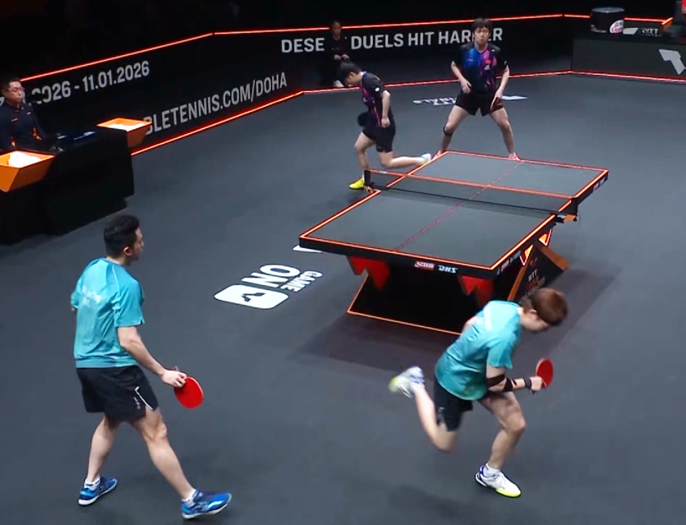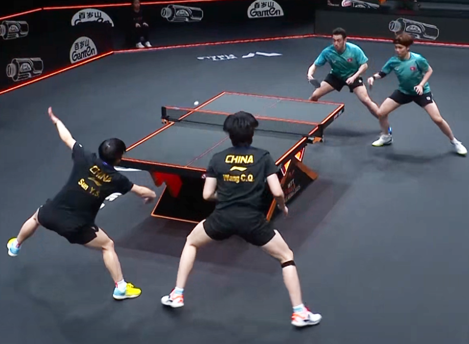 第三局中国香港组合上来就连丢4分陷入被动,但王楚钦/孙颖莎在领先的情况下被对手连续突破防线追至4-3只差1分,不过二人很快便站稳脚跟以极高质量的进攻压制黄镇廷/杜凯琹并以10-4拿到局点,再得1分后以11-4取胜,距离晋级仅一步之遥。