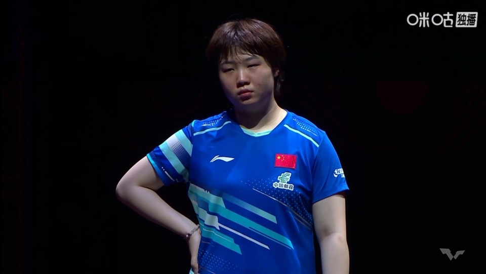 但随着时间的流逝,场上的莎莎根本经不起蒯曼的来回调动,在第5局3-11大比分落败之后,已经无法再坚持。