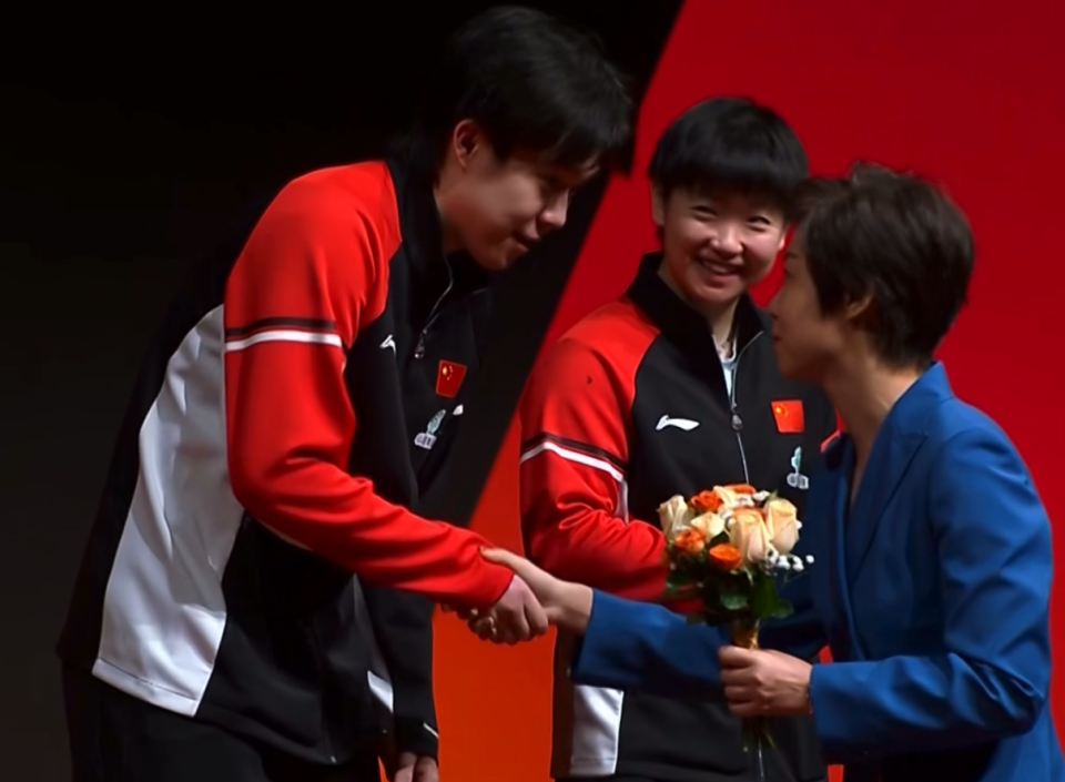 混双颁奖!莎头夺亚军超开心,莎莎与张怡宁乐趣洽谈,合影太暖心