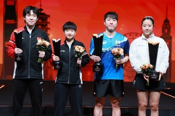 比赛结束之后,首次夺得WTT年度总决赛冠军的林钟勋和申裕斌却并没有做任何庆祝动作,因为他们知道,如果不是因为孙颖莎受伤根本轮不到他们夺冠。