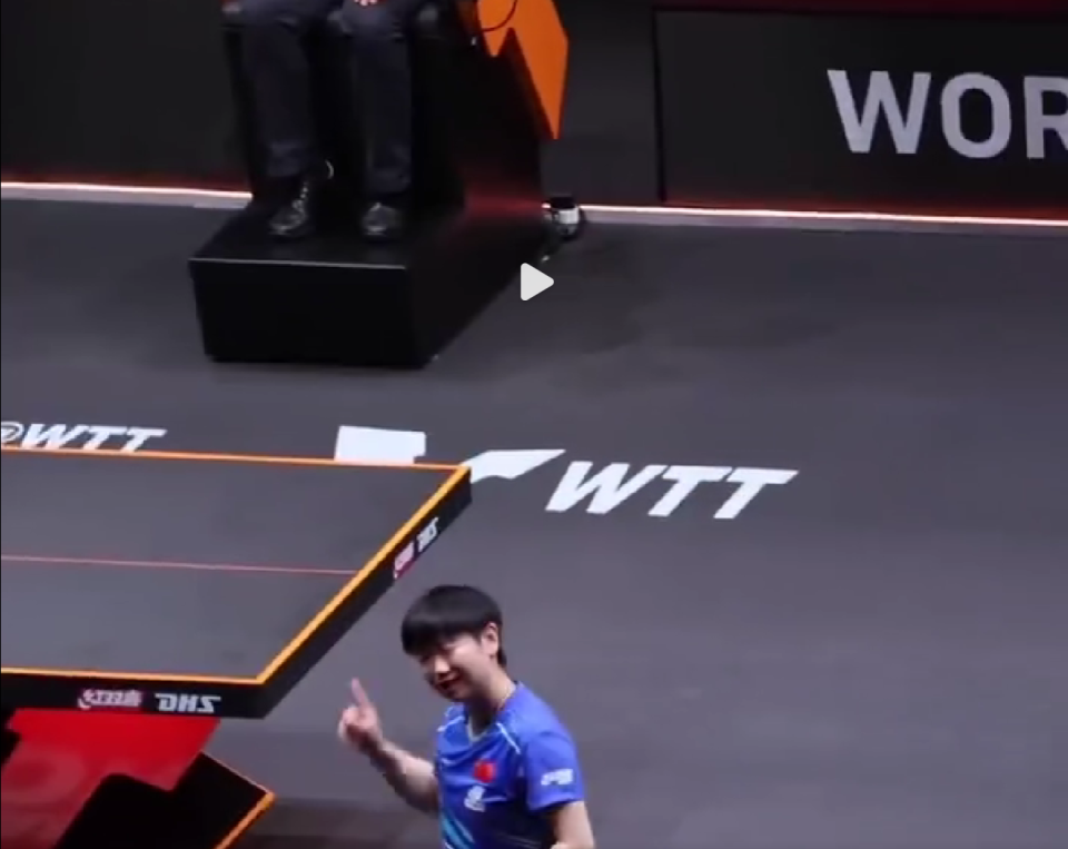 最后一球是孙颖莎打丢的,她也是摇了摇手指,一脸的遗憾。