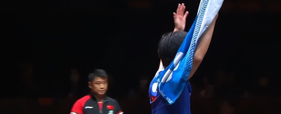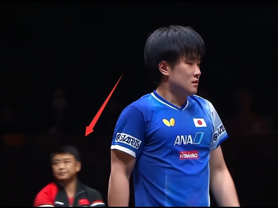 张本智和在拿到决胜一分后,大家可以看看后面王皓的表情多么的沮丧。