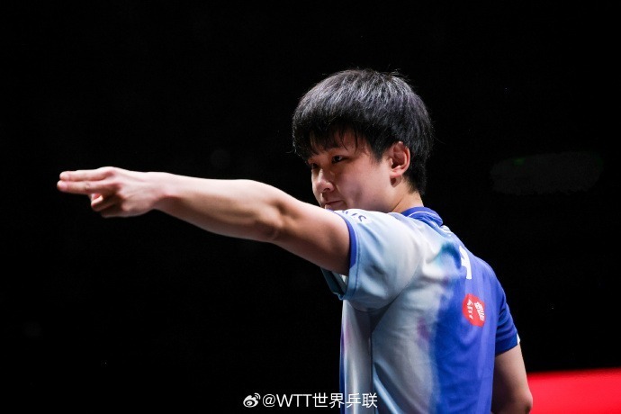 赛后他复刻樊振东的“两指并拢”的全运会经典庆祝动作致敬偶像,本次赛事每赢一场均以此方式表达敬意。