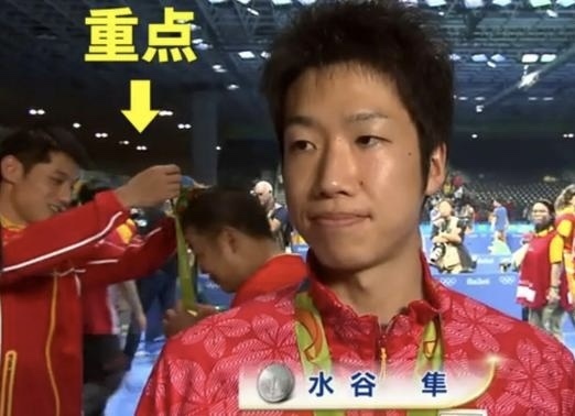 赛后接受日本媒体采访时,水谷隼还在为没能战胜中国队找借口,此时张继科出现在镜头里,他毕恭毕敬地将自己得到的男团金牌挂在刘国梁的脖子上,意味深长。