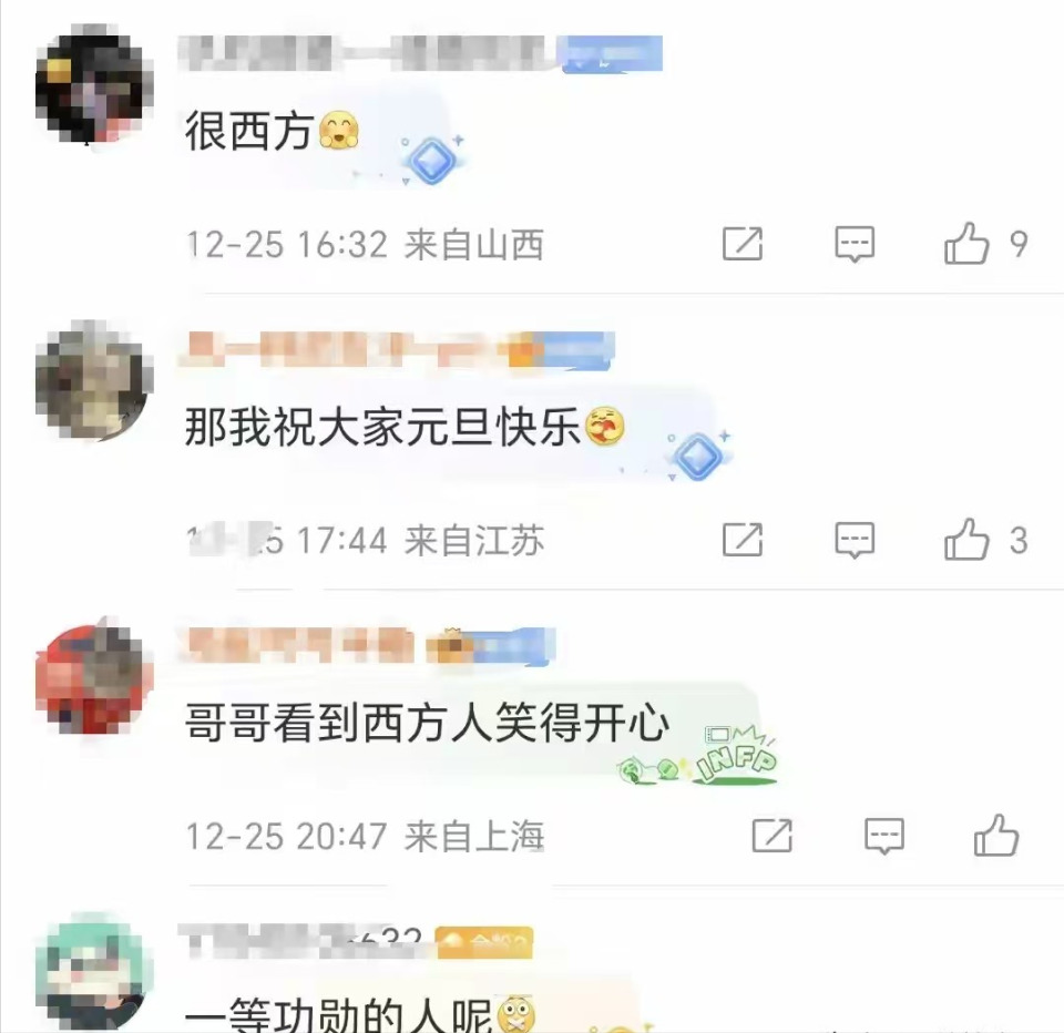 他看似中立地配文“两人头戴圣诞帽笑容满满”,却特意点出“圣诞帽”这个细节,看似是真心送祝福,实则是“项庄舞剑,意在沛公”。