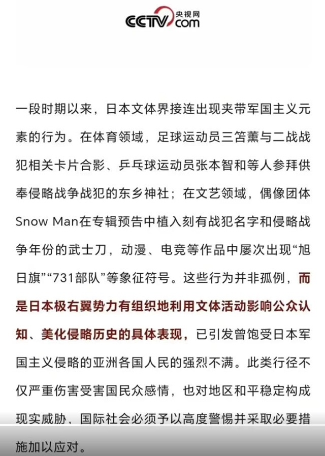 原来,在今晚,央视网发布了一段视频,谴责日本文体界接连出现的夹带军国主义元素的行为,其中在体育领域,乒乓球运动员张本智和参拜东乡神社的行为,就被直接点名!