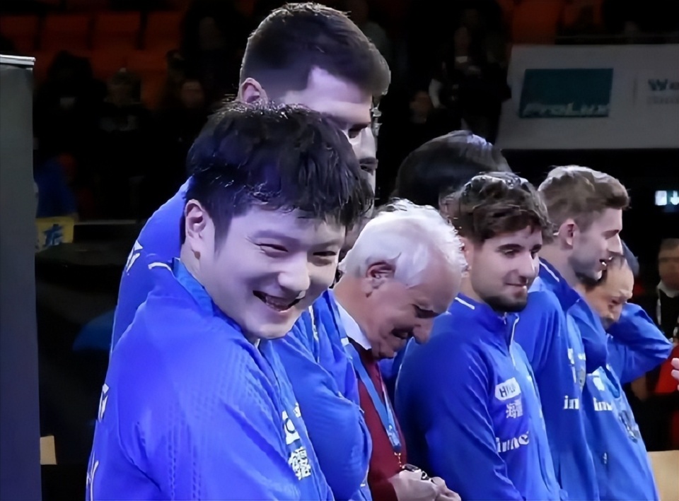 颁奖礼:樊振东低调登台,与队友开心聊天,笑容灿烂,举杯庆祝