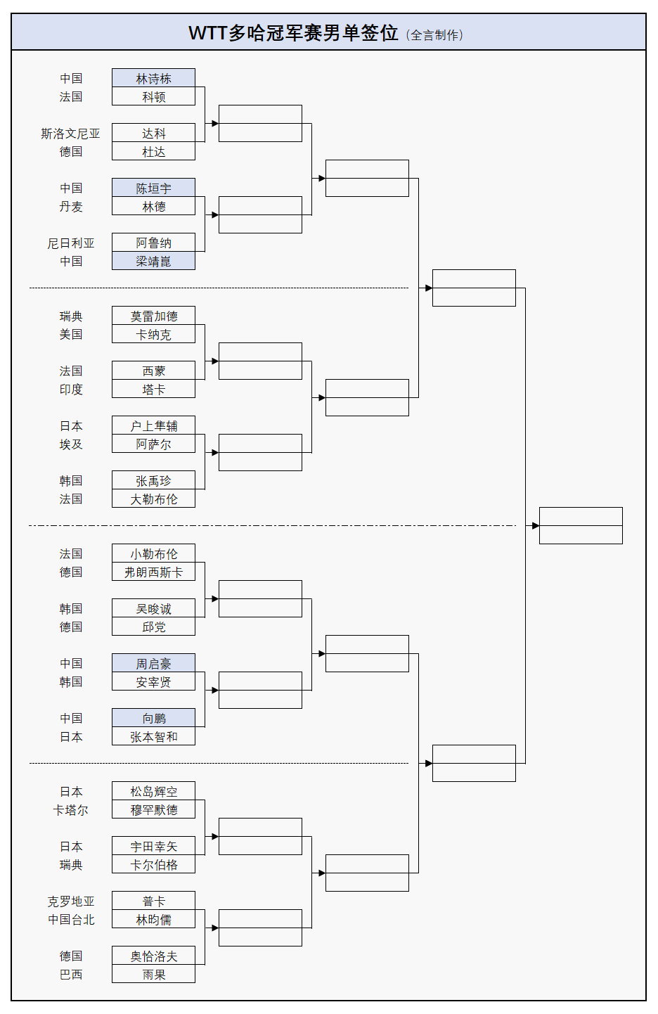 男单:林诗栋、梁靖崑、向鹏、陈垣宇、周启豪;
