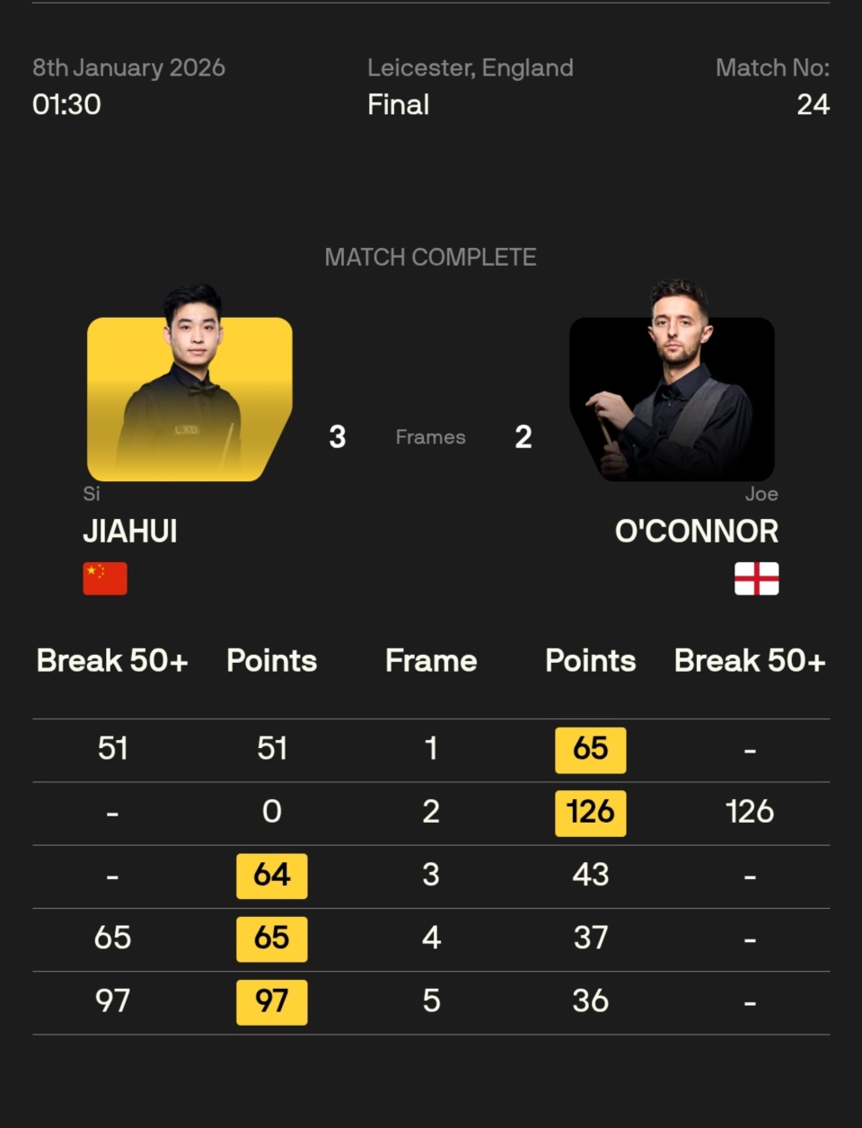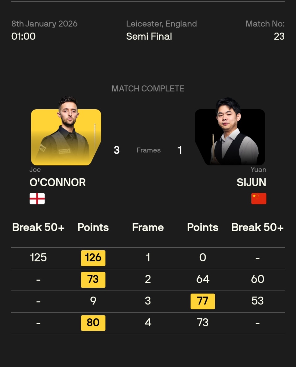 乔·奥康纳 3-1 袁思俊