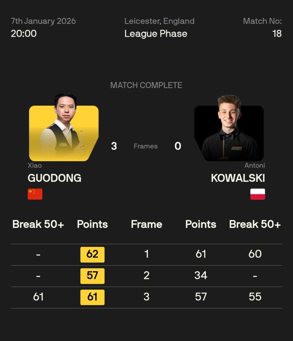 肖国栋 3-0 安东尼·科瓦尔斯基