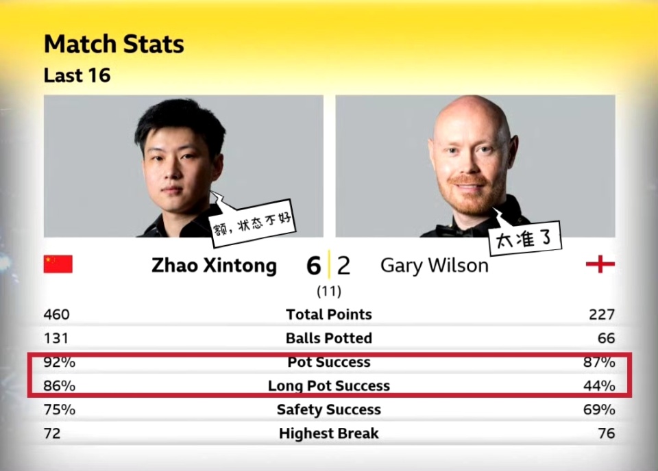 赵心童6-2加里威尔逊:8-76(76)、71(50)-0、82(51)-10、92(54)-0、72(72)-0、7-66、61-53、67(67)-22
