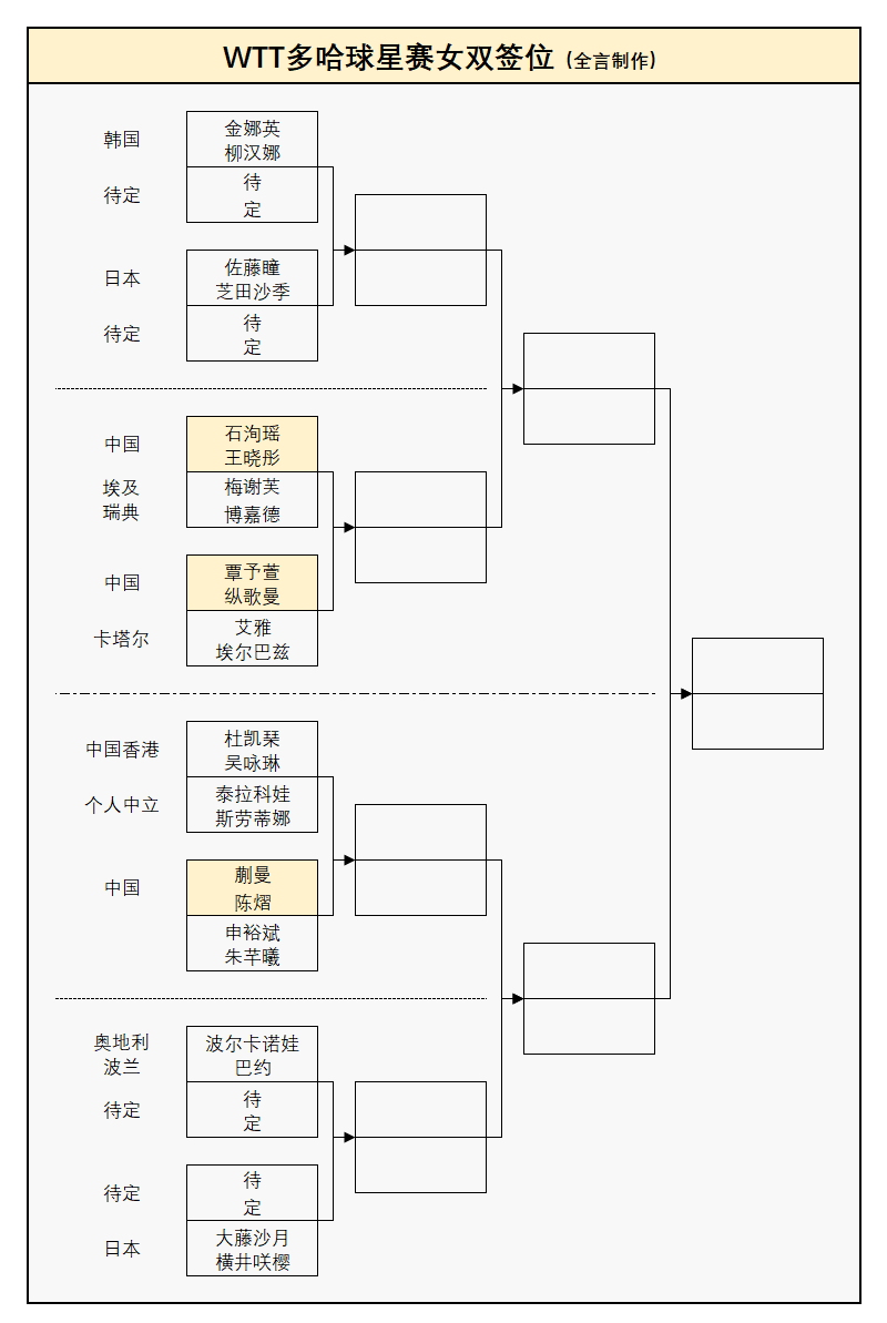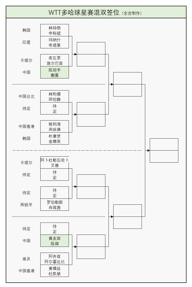 WTT多哈球星赛:国乒首日6战全胜!1月14日赛程公布,附正赛签表