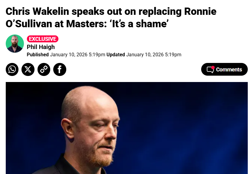 北京时间1月14日晚, 2026年斯诺克大师赛进入第四日的比赛。