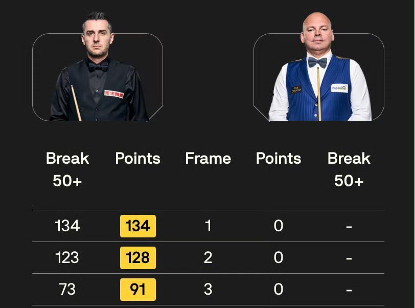 就在小组赛阶段,塞尔比4胜2负排名第二出线,其中4胜来自吴宜泽、肖国栋、奥利弗.莱恩斯、宾汉姆,2负则是赵心童、罗伯逊,就在对阵宾汉姆的比赛,塞尔比轰出单杆134分、123分、73分,以134-0、128-0、91-0连胜三局,作为世锦赛和大师赛冠军得主,宾汉姆惨败让人没想到。
