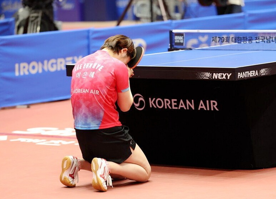 这场大韩航空与浦项国际之间的女团决赛进行得十分激烈,依靠着韩国“一姐”申裕斌独得2分的表现,大航韩航空将比赛拖到了决胜场。此前在第二场0-3输给柳韩娜的李恩惠顶着巨大的压力出场,她在先胜2局的情况下被对手金娜英连扳2局,双方进入决胜场决胜争夺。最终,李恩惠稳住了心态,以13-11绝杀对手,为大韩航空俱乐部时隔十年再次夺得韩国乒乓球锦标赛女团冠军立下汗马功劳。比赛结束后,李恩惠双膝跪地喜极而泣,随后与跑进场内的队友相拥庆祝,连担任球队主教练的削球名宿朱世赫也流下了激动的眼泪,足见这个冠军赢得有多么不容易。