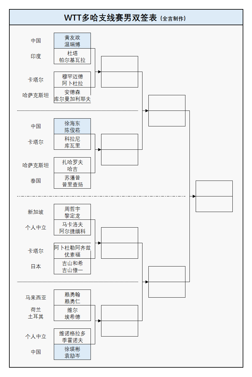 21:00,黄友政/温瑞博VS杜塔/帕尔基瓦拉(印度)、徐海东/陈俊菘VS科拉尼/库瓦里(卡塔尔)、徐瑛彬/袁励岑VS维诺格拉多/季霍诺夫(个人中立);