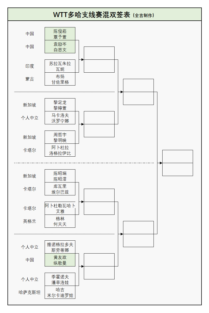 WTT支线赛:国乒资格赛2胜1负!1月29日赛程公布,5项签表出炉