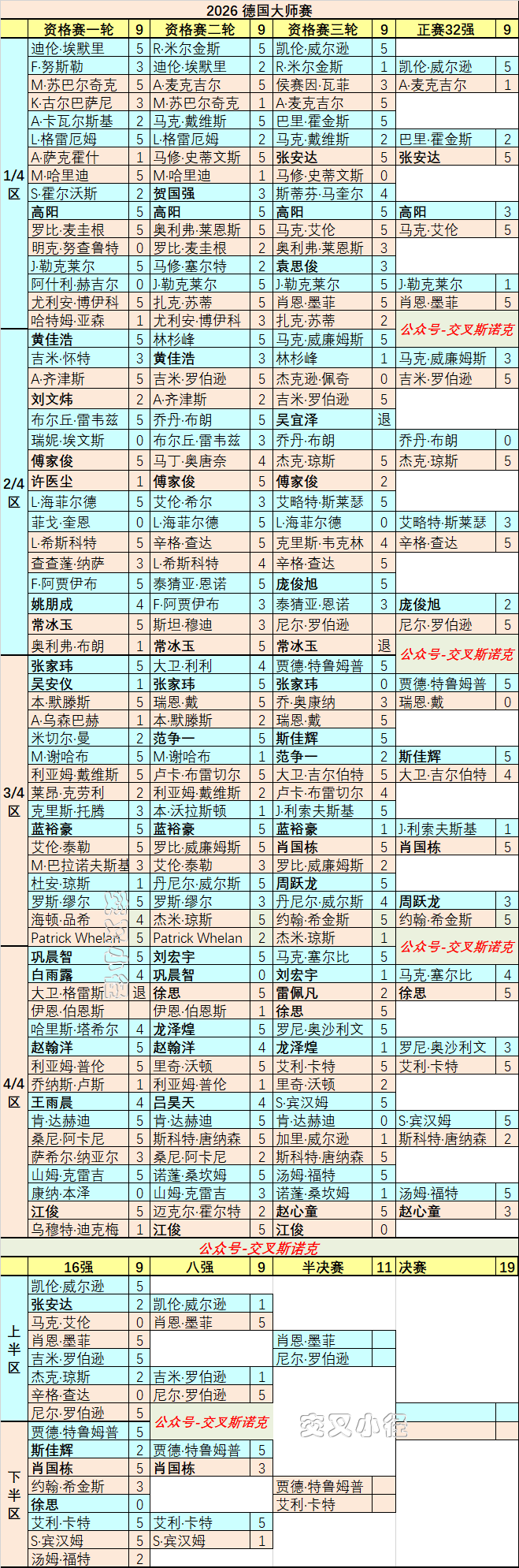 德国大师赛:11连败!独苗肖国栋不敌小特,80后三强人进半决赛