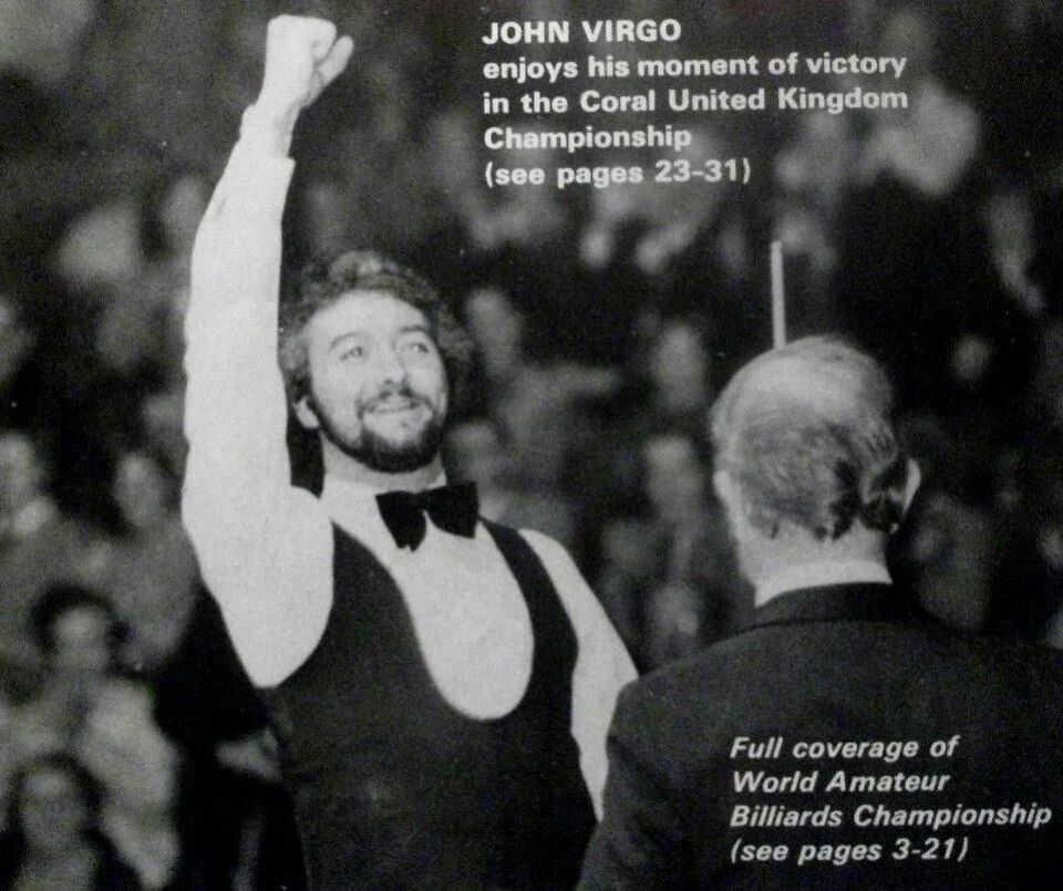 当年的英国锦标赛,维戈杀入决赛对阵当年世锦赛冠军特里·格里菲斯。维戈因为迟到20多分钟,被罚掉两局,尽管如此,维戈最终决胜局战胜格里菲斯,登顶英锦赛。这是维戈职业生涯拿到的最具分量的一个冠军,可惜由于当时BBC员工罢工,决赛的夺冠时刻没有被电视转播。(相关参阅:说说斯诺克英国锦标赛历史上的那些奇葩故事。)