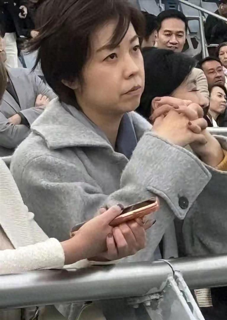 她没有化妆,脸上是球迷最熟悉的那种表情——嘴角微微抿着,眼神聚焦在远处,像是在分析球路。