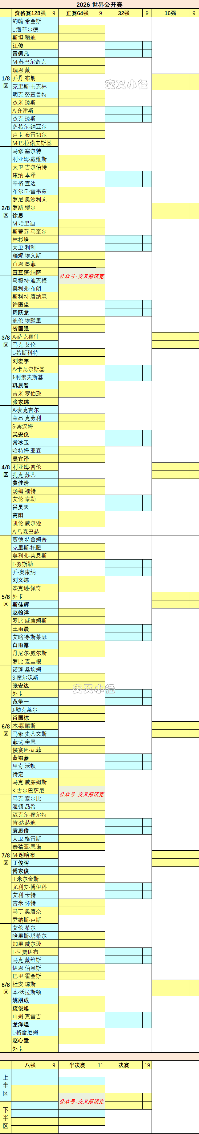 另外,由于报名人数多,加上有四张外卡,128强外,还有一场预选轮的比赛,米切尔·曼v 外卡。