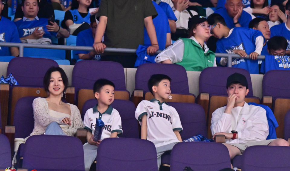 两个儿子当天都穿着一身红色体恤衫,黑色半截裤,活泼可爱。马龙还有个个子高大的朋友带着两个孩子。