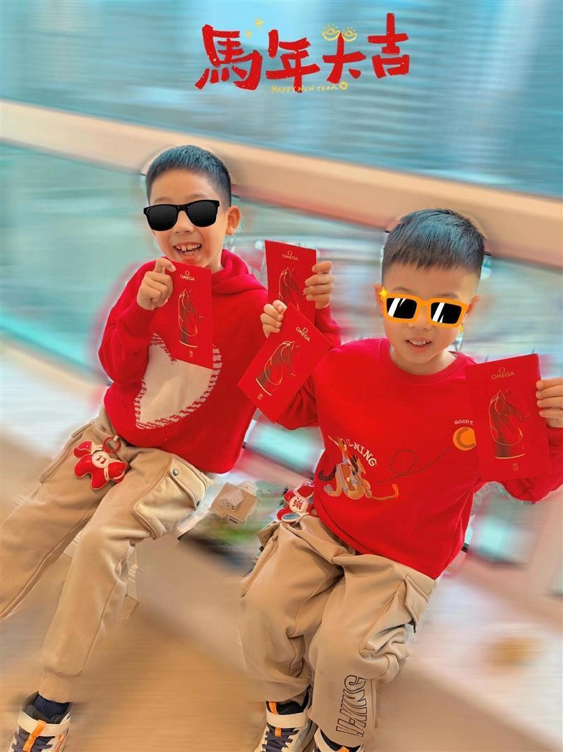 马龙妻子夏露大年初一晒美照,穿粉色中式服,俩儿子帅成小明星