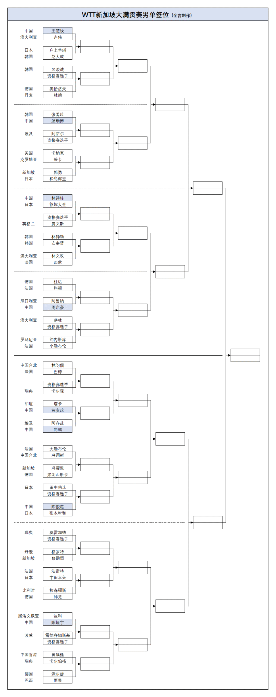 详细签表如下: