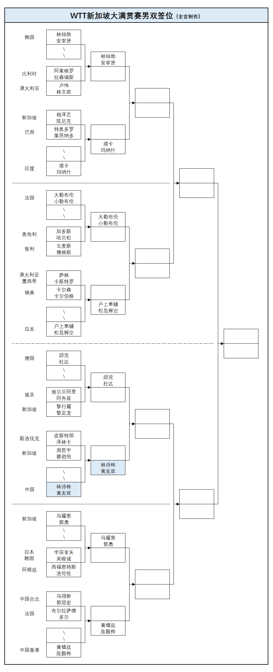 WTT新加坡大满贯:多位名将已出局!2月21日赛程公布,附5项签表