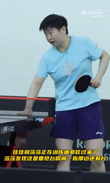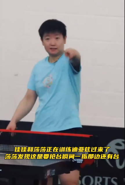 孙颖莎马上想到了,迪亚兹这是要跟自己抢球台训练啊,于是她马上冲着另一侧的球台指去,意思是那一边还有空余的球台。