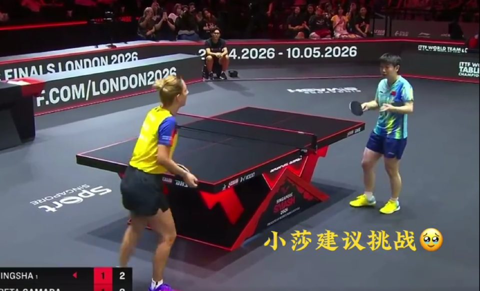 2月25日消息,2月25日结束的2026WTT新加坡大满贯女单1/16决赛中,孙颖莎以3-1战胜36岁罗马尼亚老将萨马拉,晋级16强。比赛中,裁判一次误判孙颖莎得分,孙颖莎提示对手鹰眼挑战,萨马拉挑战成功满脸笑容。