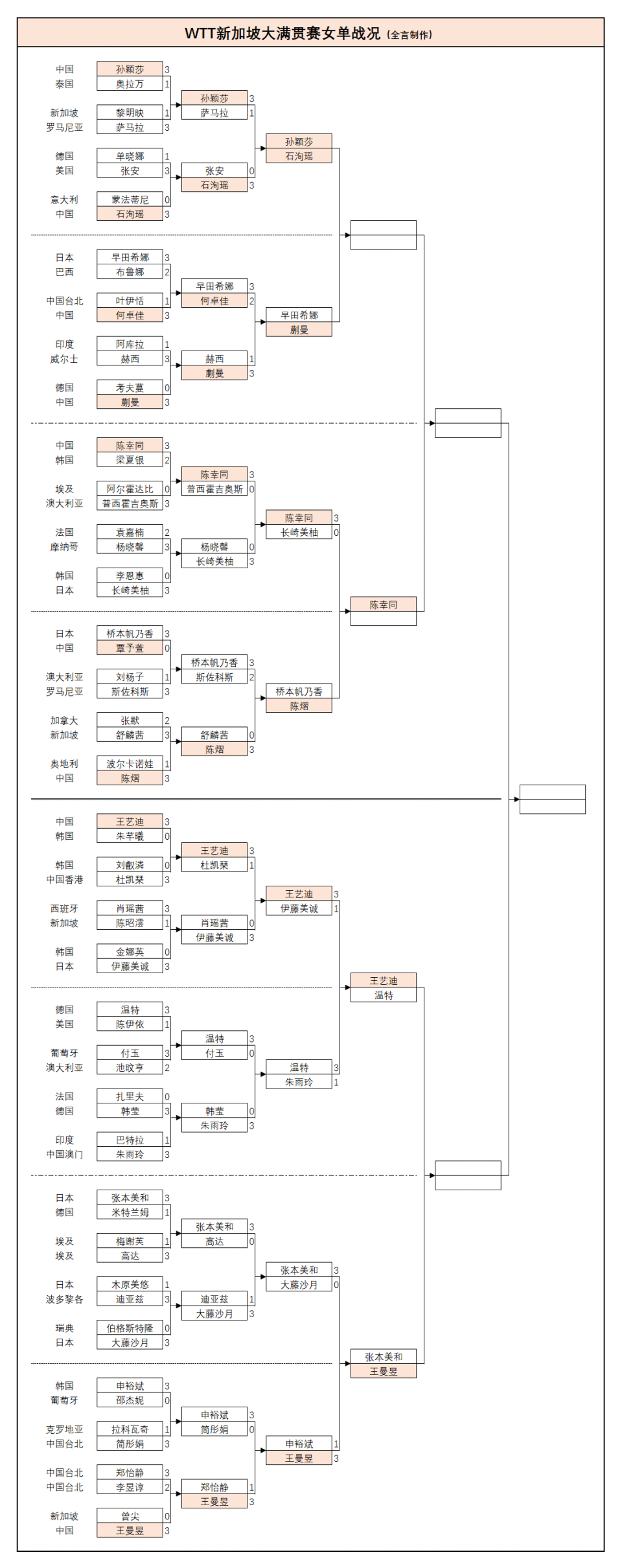 WTT新加坡大满贯:女单8强决出5席!朱雨玲被爆冷,王曼昱战张本美和