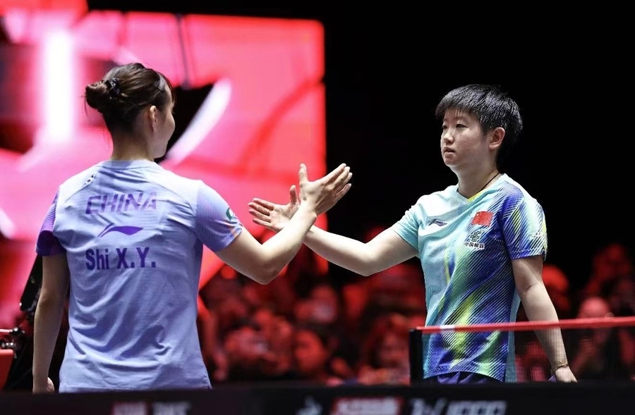 女单赛场,孙颖莎遭遇队友石洵瑶的顽强阻击,最终以3比1涉险过关。孙颖莎赛后总结,自己比前两场发挥得更好,“我和石洵瑶很熟悉,她实力强、进攻与对抗出色,近一年状态稳定。首局自己进入状态快,但第二局前三板有问题被扳平,后两局提醒自己耐心纠缠,第三局领先时她打出精彩的多拍得分,我还是通过及时调整,稳住了局势。”