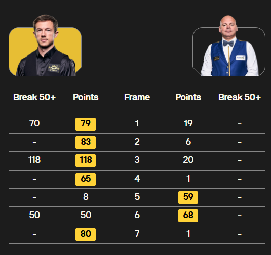 接着利索夫斯基上场,对阵老将宾汉姆。前四局,司机打出一杆79分和一杆破百,4-0手握大把赛点。第6局,司机单杆50分后打丢粉球,错失结束比赛的好机会,宾汉姆连救两赛点。第7局,司机单杆40+后又出现失误,但宾汉姆没能逆转,司机5-2锁定胜利。