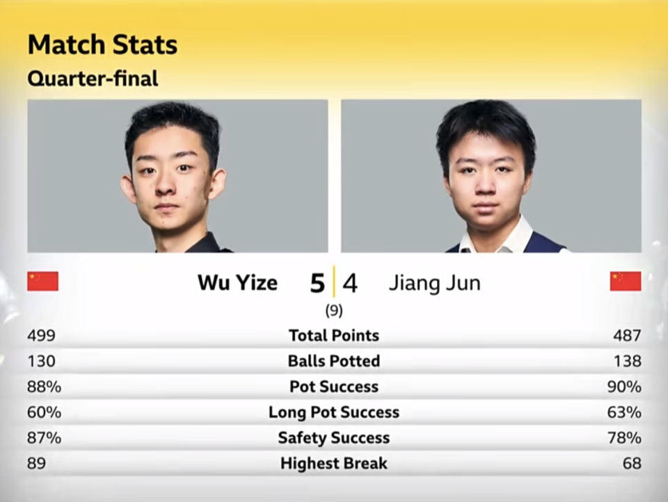 随着吴宜泽5-4逆转江俊,斯诺克4强出炉!大概率以下2人会师决赛