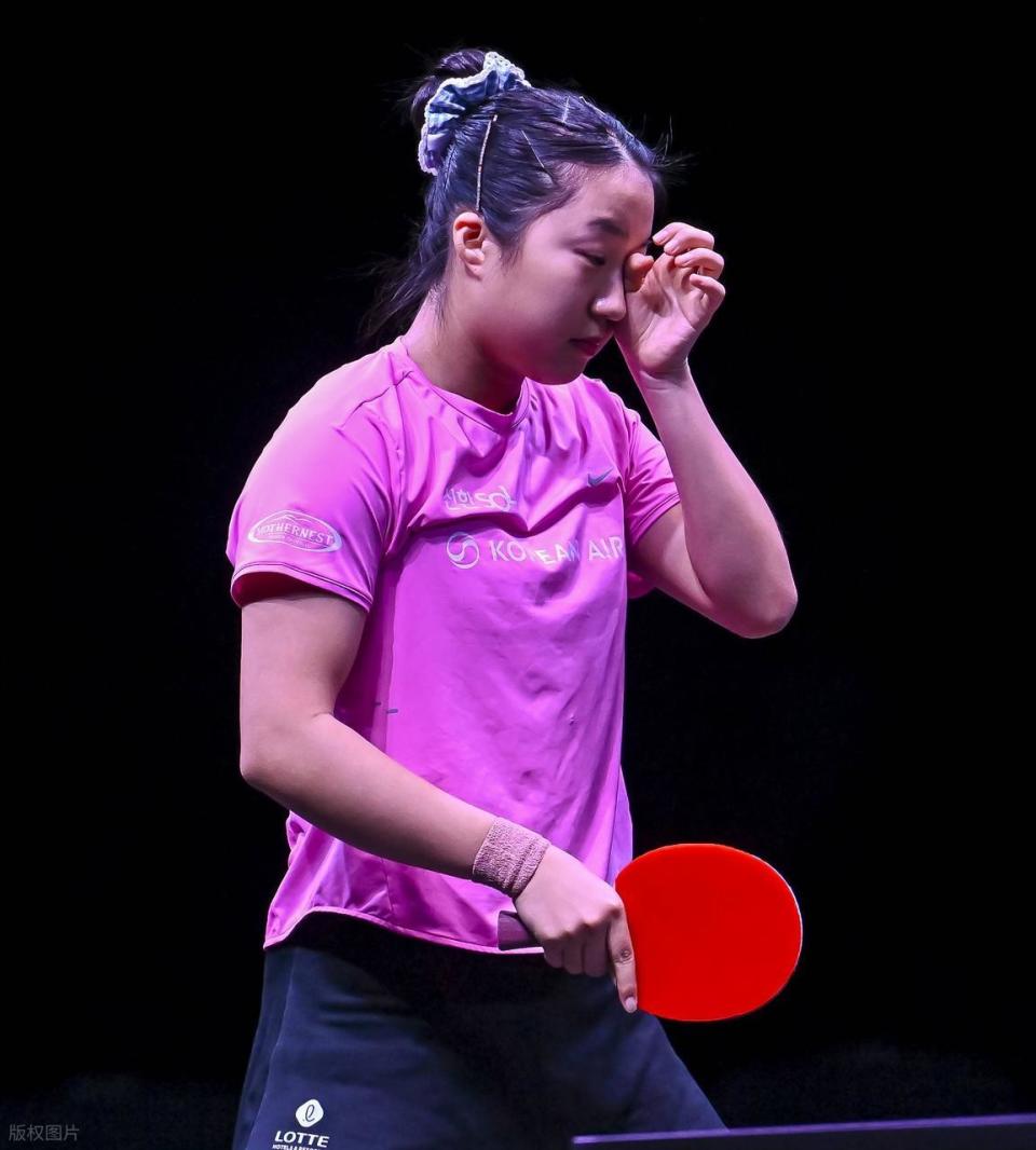申裕斌在连胜2场之后,女单1/8决赛遇到了赛会女单二号种子国乒球员王曼昱,申裕斌在第一局打出爆分21-19取胜的情况下,被王曼昱3-1逆转,此役申裕斌发挥得足够好了,怎奈王曼昱的实力太强了,申裕斌想要迈过王曼昱这座高山确实很难,至此韩国女单参赛7人全军覆没。