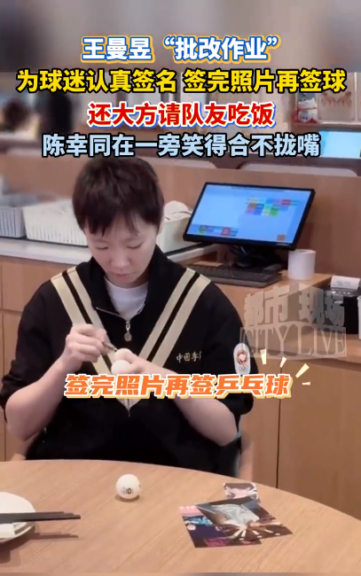 马上就有球迷围了上来,王曼昱现场“批改作业”,为球迷认真签名,