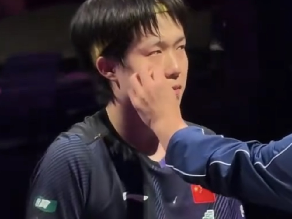 输球之后,王楚钦哭了!这一幕还是非常罕见的。来到场边的他非常自责,像个犯错的孩子,眼眶通红,眼神里透露着不甘心。而担任场外指导的王皓则为他擦拭眼泪。