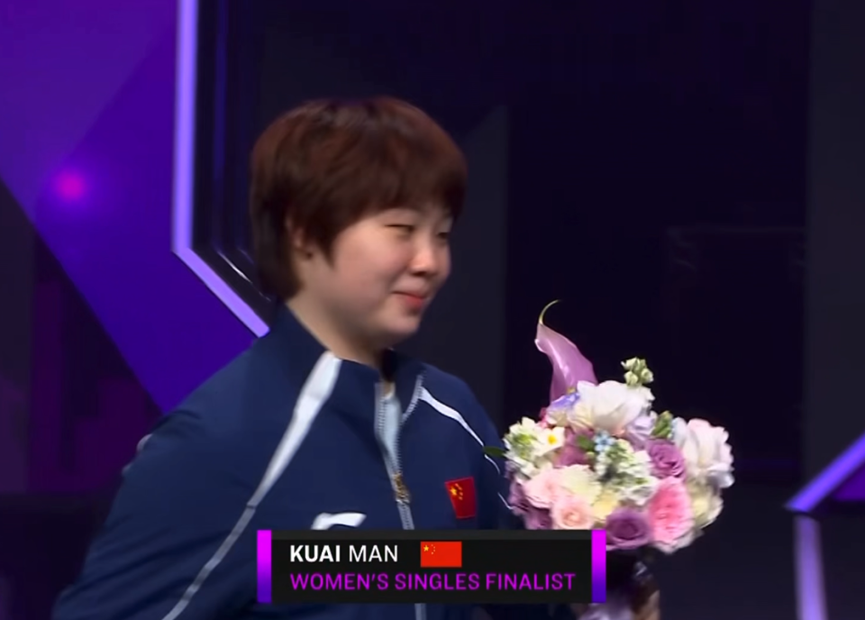 来到颁奖典礼,蒯曼的表情还是比较淡定的。这次是她冲击冠军的最好机会,并且整个赛事的状态也不错,相比于之前有了足够的提升,速度与落点都在更加有侵略性。可惜的是,就是第七局没有把握住,这是遗憾。如果那段时间坚决的话,蒯曼完全有希望取胜,这会是她需要总结的地方了。
